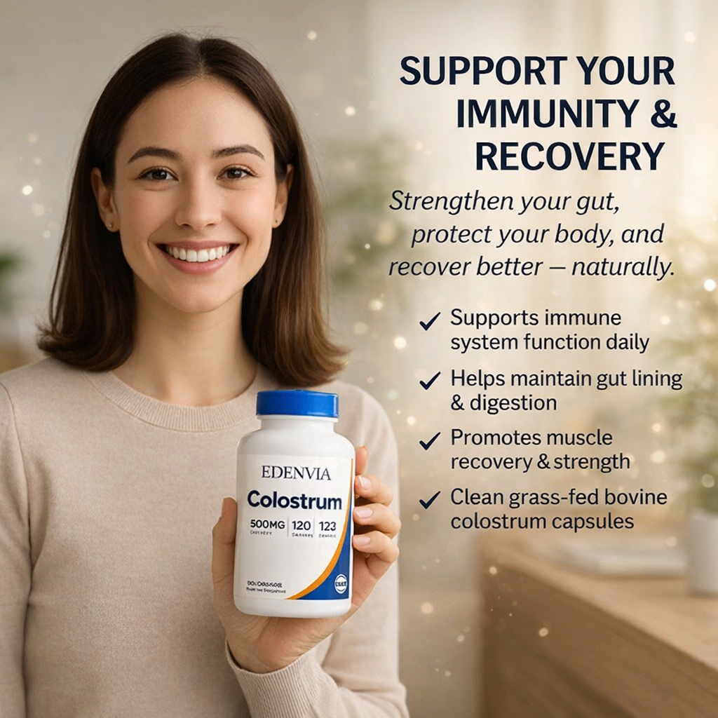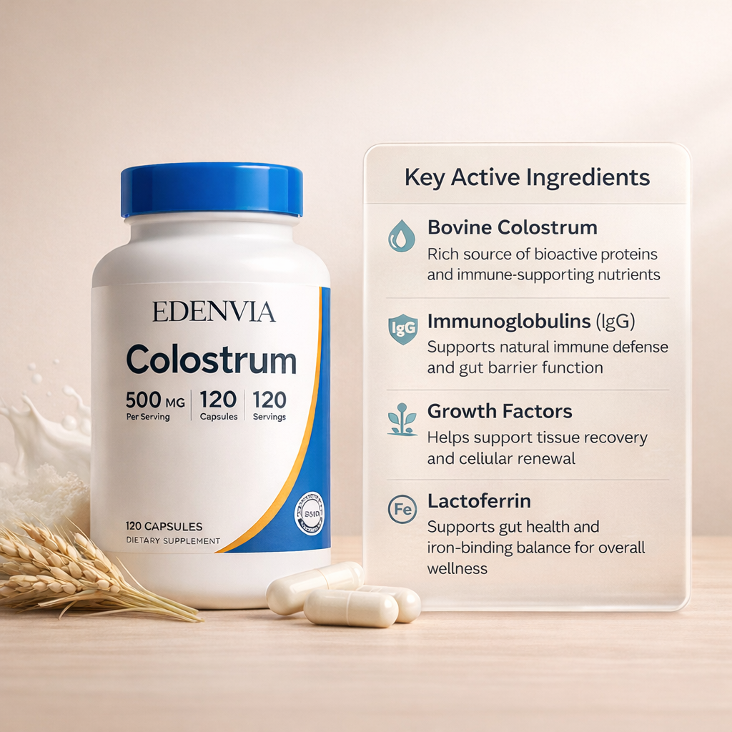 EDENVIA Colostrum Capsules are a daily wellness formula designed to support immune balance, digestive comfort, and overall vitality.