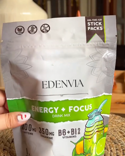 Edenvia Energy + Focus is a premium daily performance drink mix designed to give you clean, powerful energy and laser-sharp focus—without jitters or crash. Each serving combines 200mg Caffeine, 350mg L-Theanine, and B6 + B12 vitamins to support mental clarity, concentration, and productivity so you can get more done and feel in control of your day.