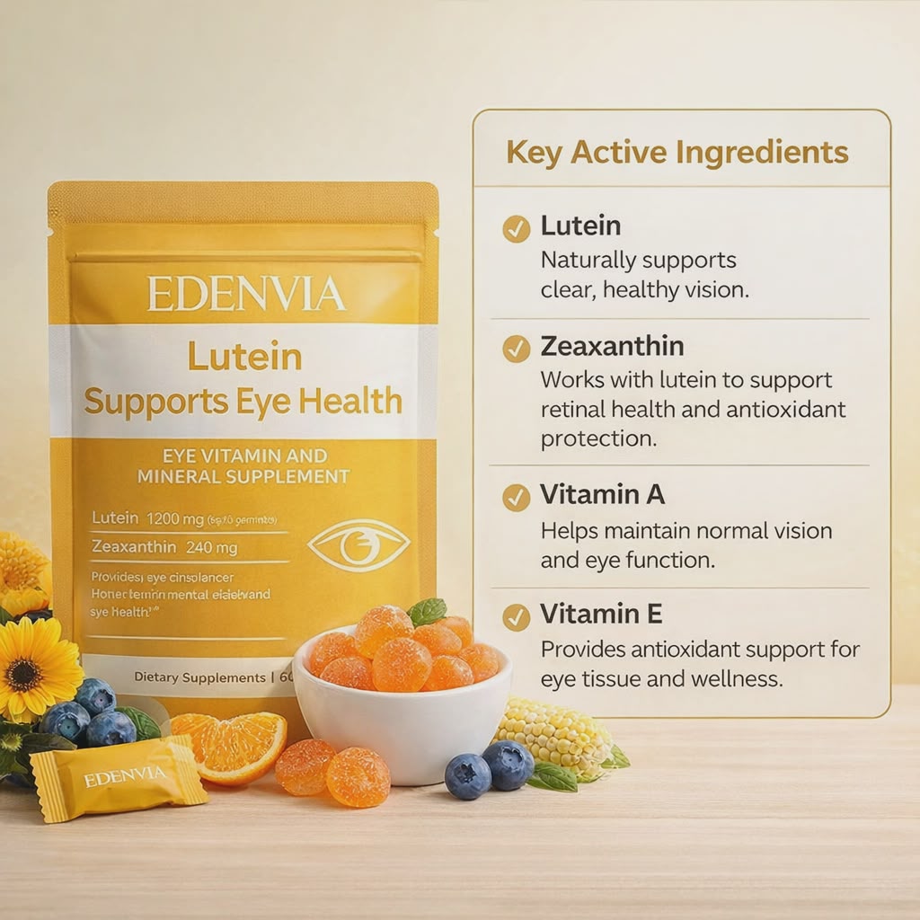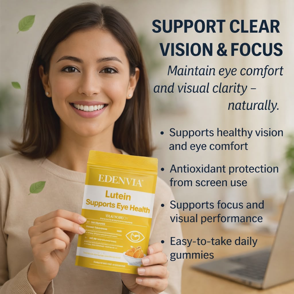 EDENVIA Lutein Gummies are a daily eye wellness formula designed to support healthy vision, visual comfort, and long-term eye health.