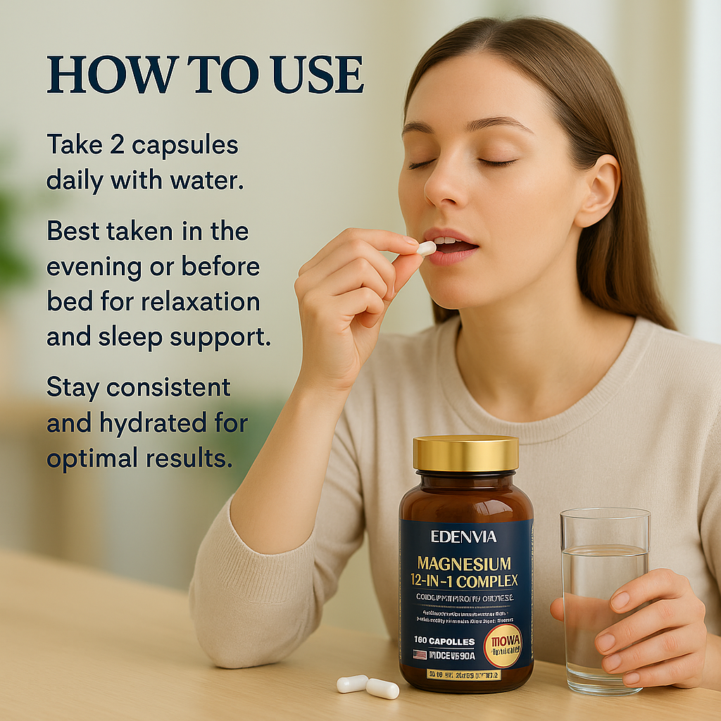 If you use EDENVIA Magnesium 12-in-1 Complex consistently for 30 days and don’t notice improvements in your sleep quality, relaxation, muscle comfort, or overall balance, we’ll give you a 100% refund ,no questions asked.