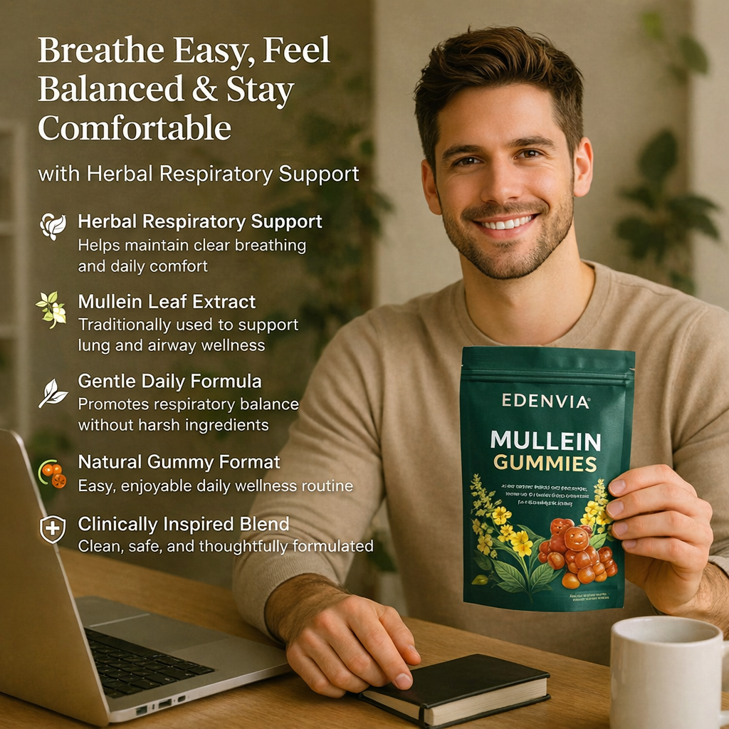 EDENVIA Mullein Gummies are a daily herbal wellness formula designed to support respiratory comfort, throat ease, and long-term lung wellness.